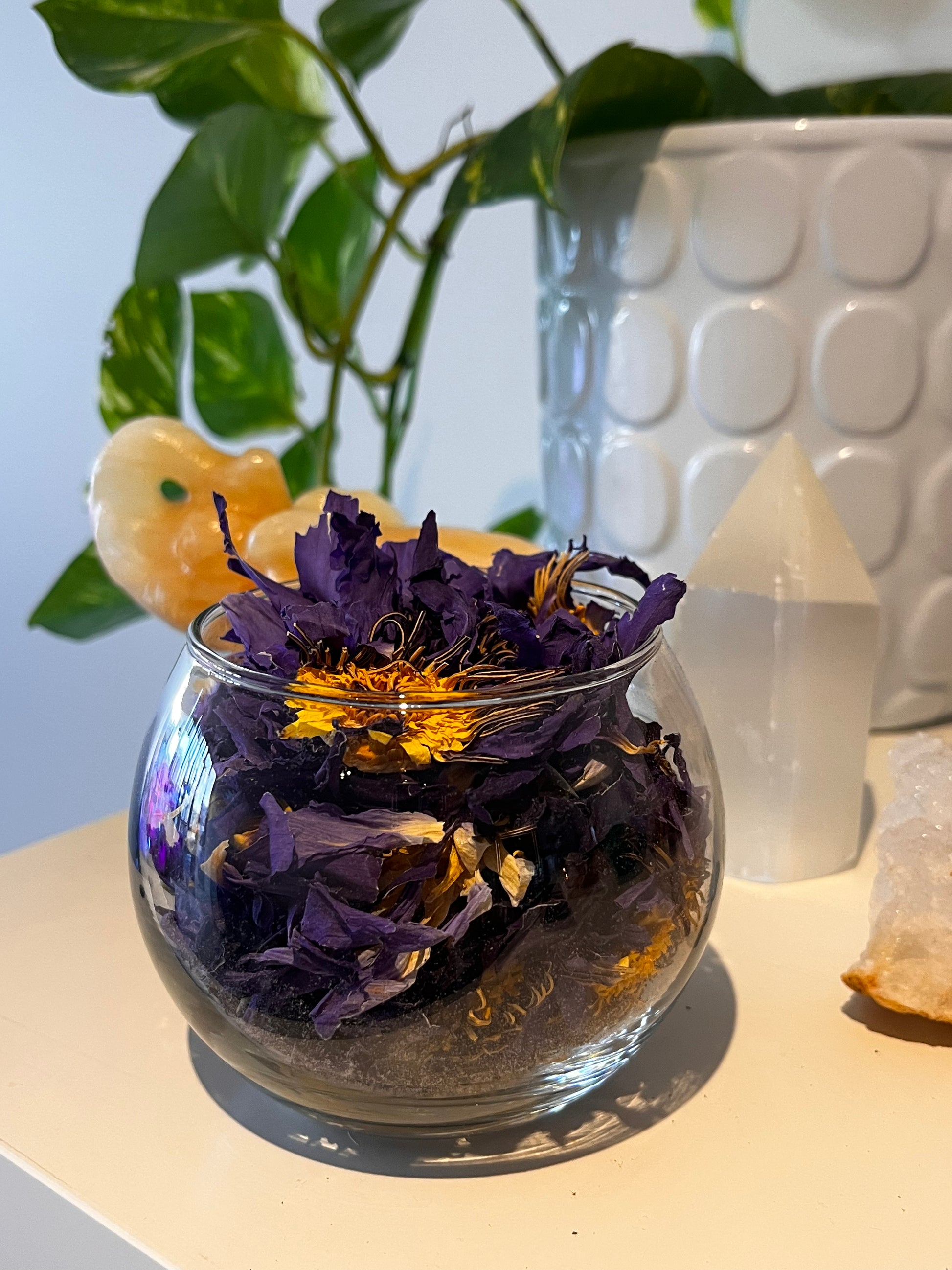 Used as an aphrodisiac in sacred rituals, Blue Lotus was treasured not only for its intoxicating aroma and calming presence but also for its ability to stir sensual awareness and inner pleasure.