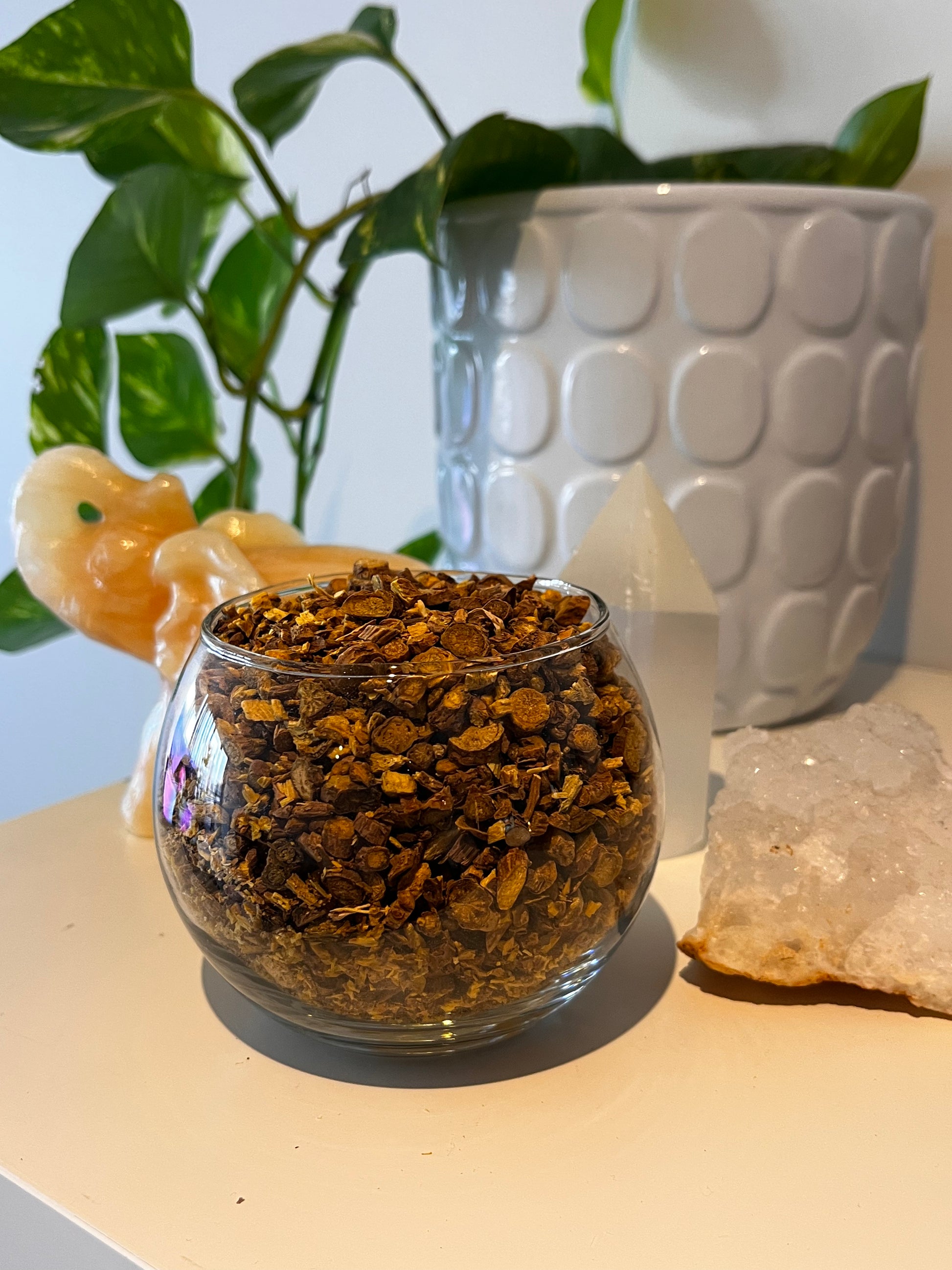 This product is not intended to diagnose, treat, cure, or prevent any disease. The information provided is not a substitute for professional medical advice. Please consult your healthcare provider before using any herbal products, especially if you are pregnant, nursing, taking medication, or have a medical condition. Keep out of reach of children. Store in a cool, dry place. Use with care and intention.